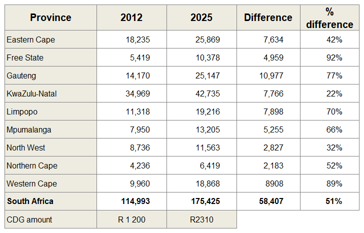 Source: South African Social Security Agency (2012; 2025) social grant statistics.